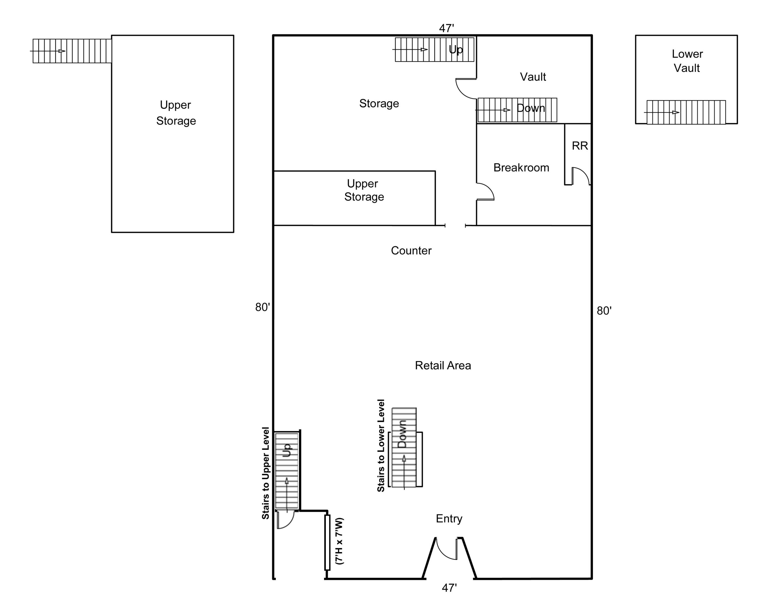 - Property Features / Assets: Main Level: 3,724 SF (Retail & Storage); Upper Level: 2,444 SF (Apartment); Lower Level: 3,520 SF (Unfinished Basement Storage)
