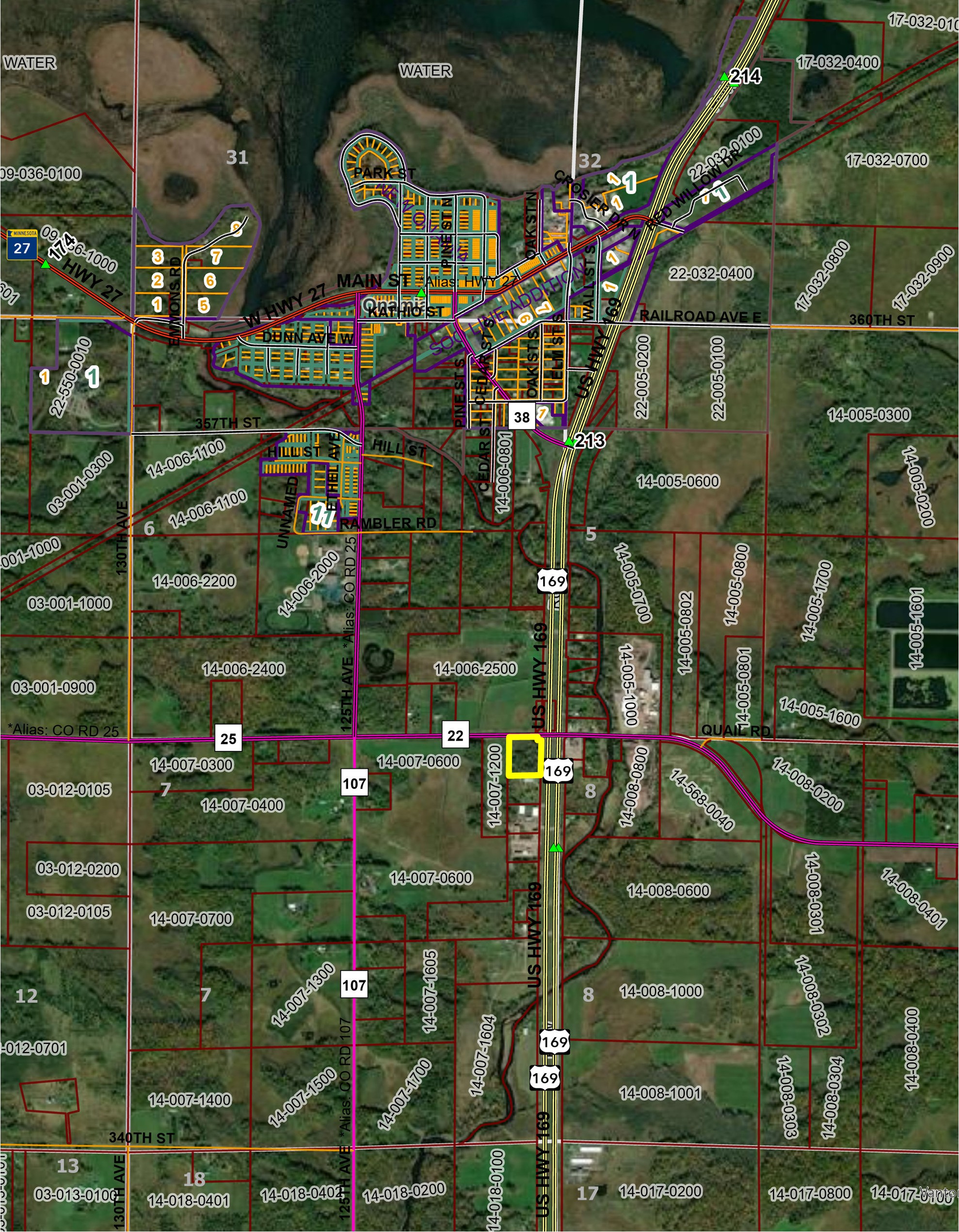 - Directions: Just south of the City of Onamia, at the Junction of 350th Street (CR 22) and 169 - Parcel is the SW corner