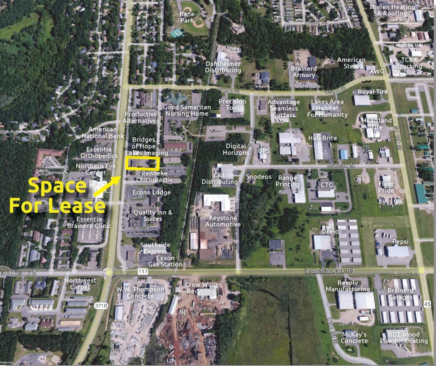 - Neighboring Businesses: Located near a growing medical community, businesses nearby include Lakes Imaging, Bridges of Hope, Productive Alternatives, Good Samaritan Nursing Home, American National Bank, Essentia Orthopedics, Great Northern Opticians, Essentia Health Clinic, Renneke Chiropractic, Econo Lodge, Quality Inn & Suites, plus numerous others.