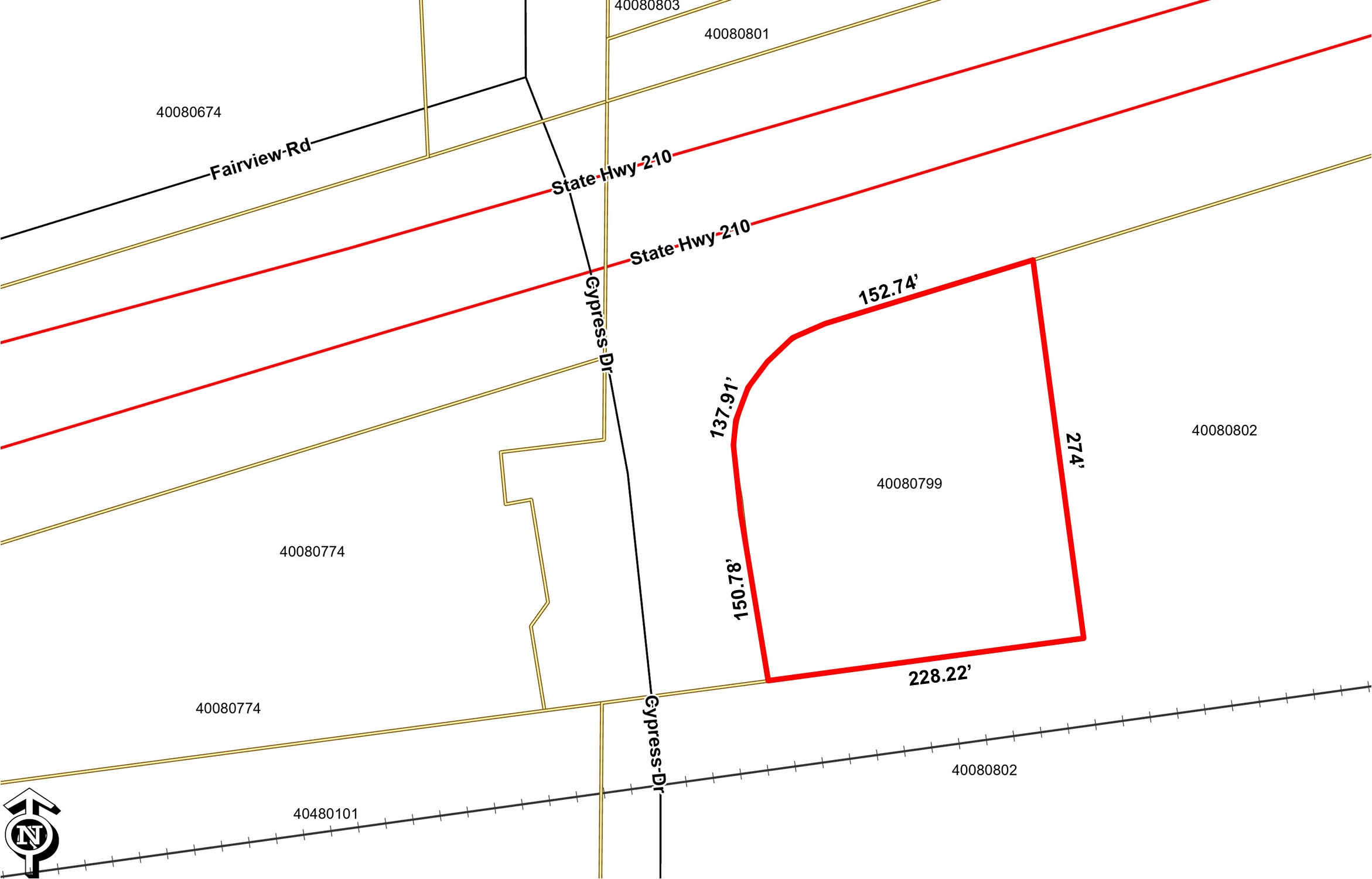 • Road Frontage: 152.74’ along Hwy 210 (Washington Street) and 288.69’ along Cypress Drive